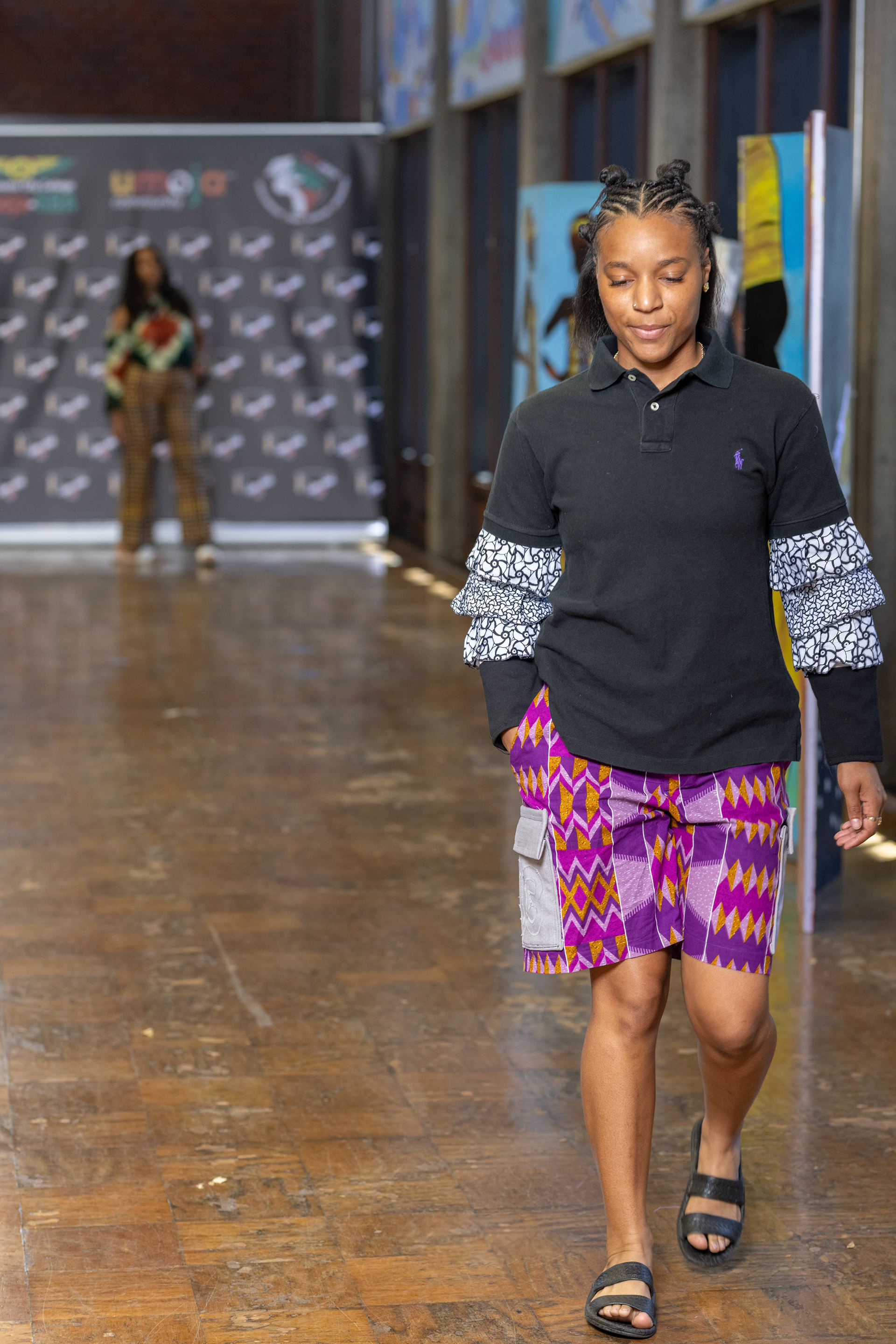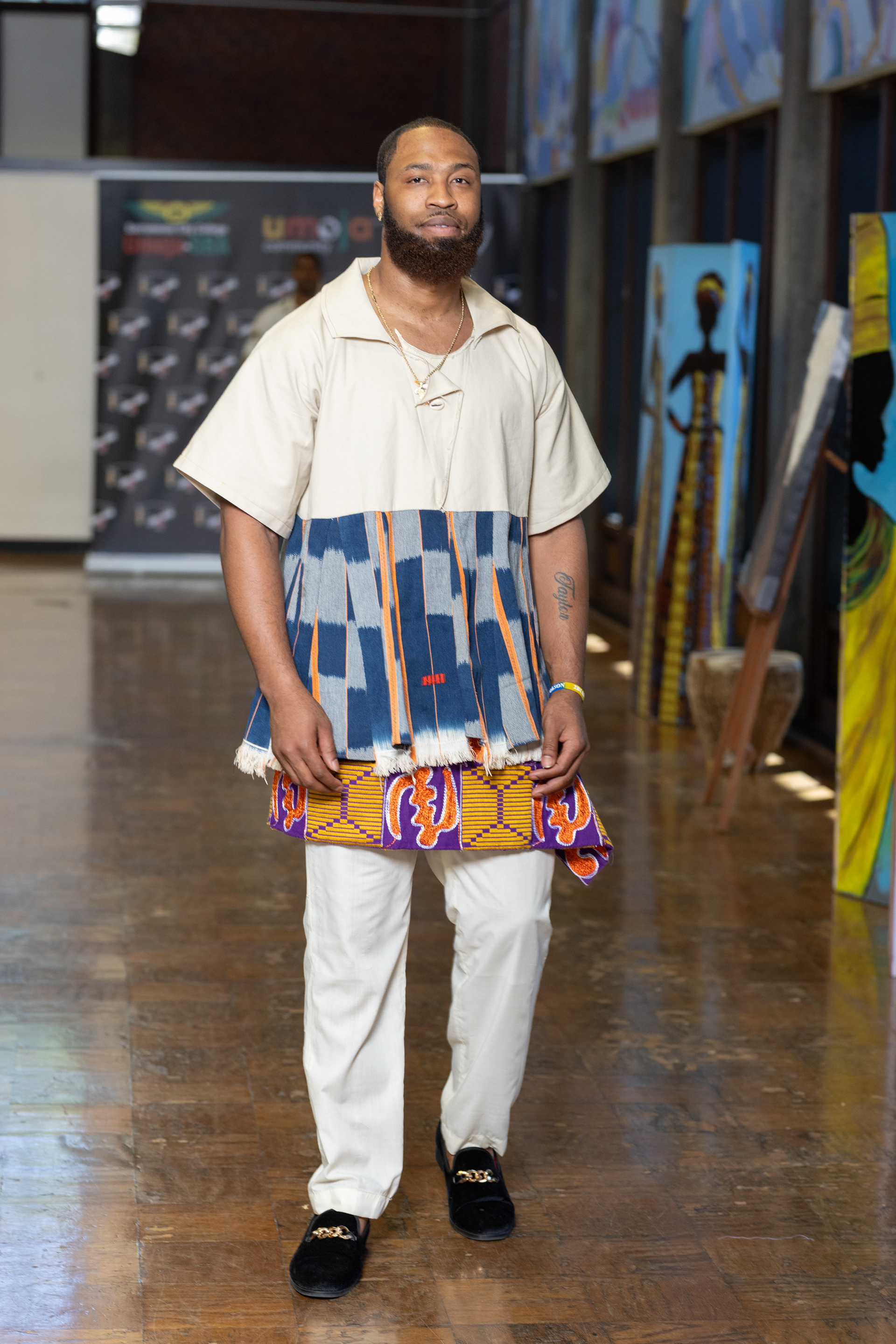 Problem: denim was too small for model. Solution: added wrap skirt.
