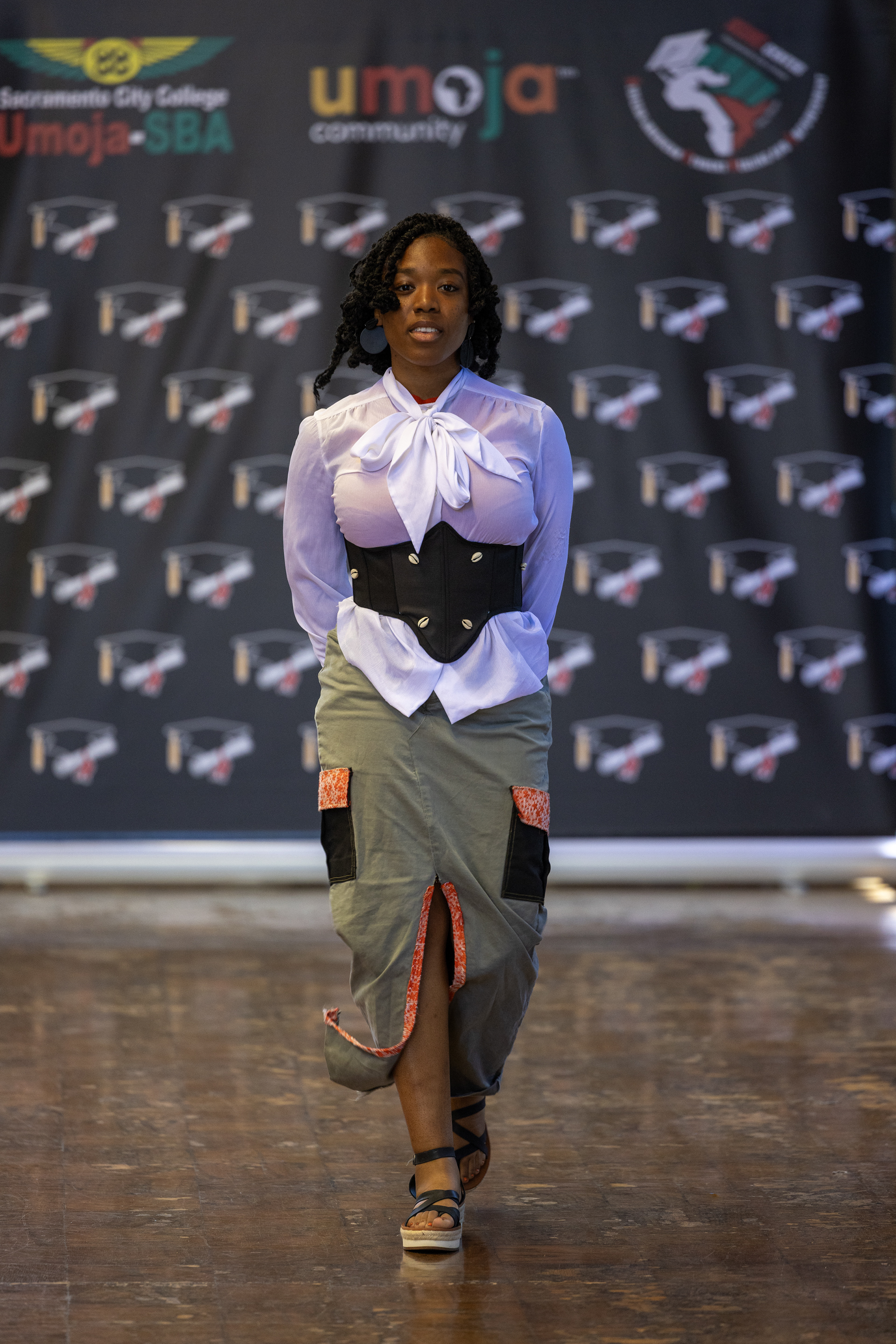 Problem: No contour of tear away pants. Solution: used small darts in back of dress.